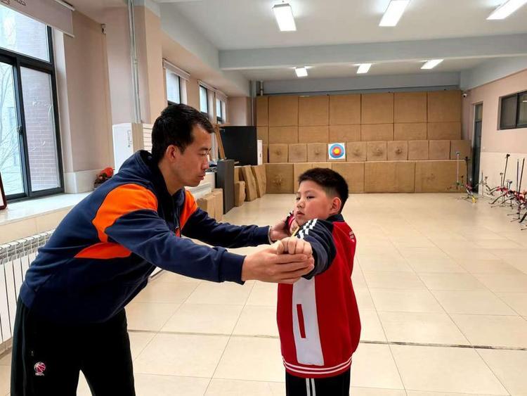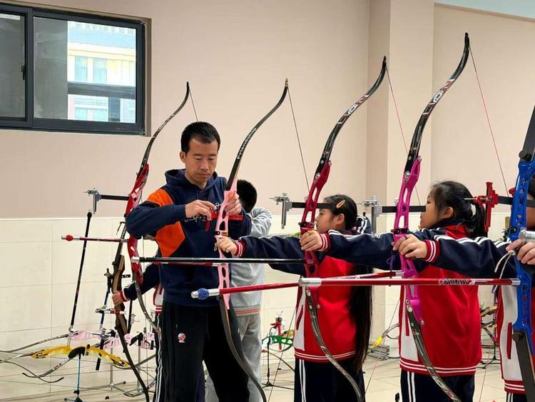 Li Weibin corrects the students' posture at Jinxiucheng Primary School in Jinan, capital of east China's Shandong Province, Dec. 15, 2025. (Xinhua/Zhang Liyuan) A national archery champion is now teaching the ancient sport at a Jinan primary school, mentoring young talents and showcasing China's push to integrate elite athletes into education to foster both sporting excellence and cultural tradition. JINAN, Dec. 20 (Xinhua) -- At 4 p.m., more than 30 students were practicing basic archery movements in the training room of Jinxiucheng Primary School in Jinan, capital of east China's Shandong Province. "Keep your hands steady. Even slight movements of your body may affect the fluidity of the motion," said Li Weibin, head coach of the school's archery club, as he corrected the students' posture. Li, who competed twice at China's National Games and won the men's title at the 2006 National Outdoor Archery Championships, chose to become a physical education teacher at the primary school after retiring from professional sport through a special recruitment program, bringing his elite experience onto the campus. Archery is not only an official event at the Summer Olympic Games, but also a traditional Chinese sport with a history of more than a thousand years, evolving from hunting to recreation and then to a modern competitive discipline. According to Li, introducing archery to primary schools helps identify and nurture young sporting talent, while also promoting traditional culture and diversifying school sports beyond ball games.