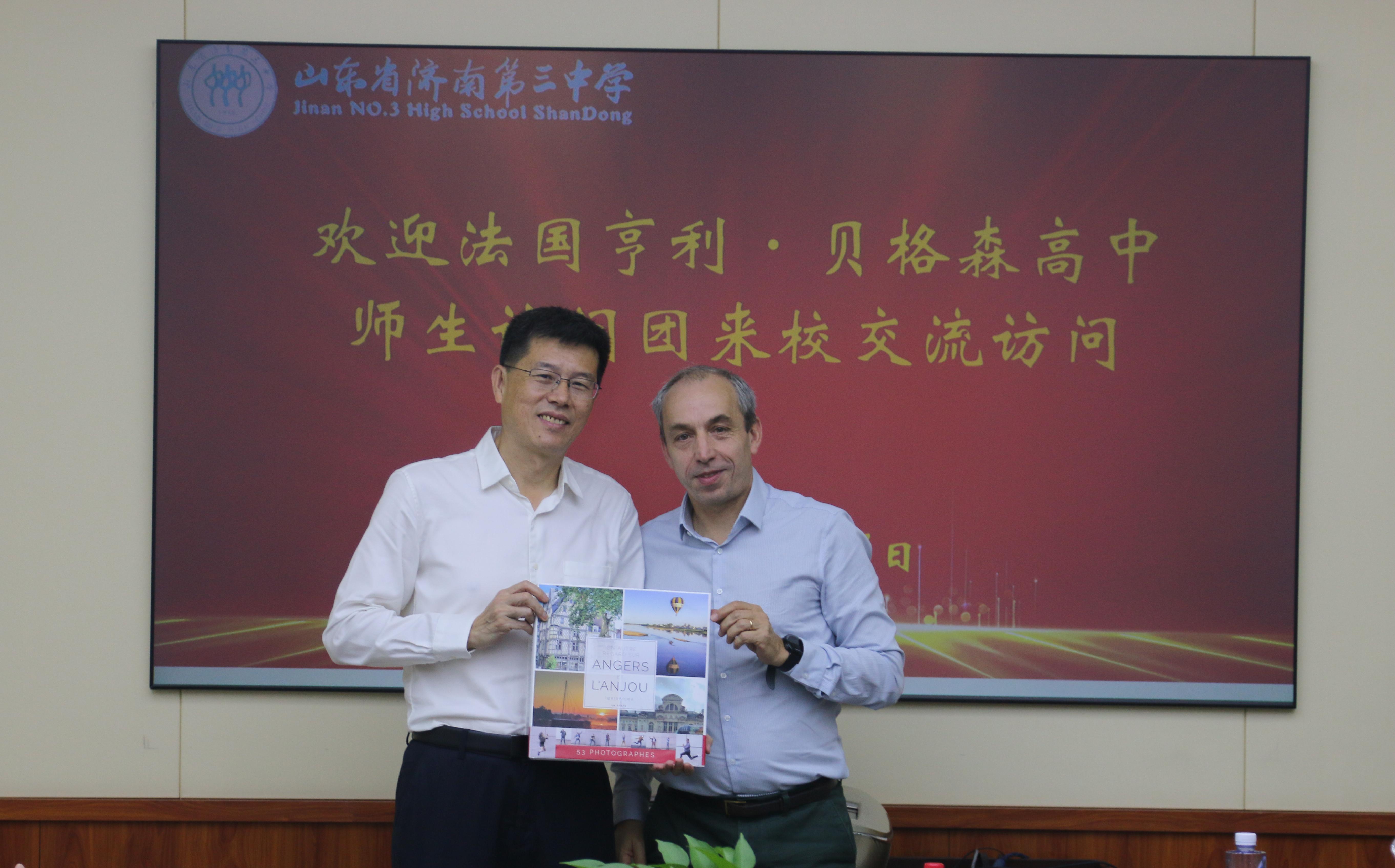 有朋自远方来……济南三中迎来法国“老朋友” 10月17日上午,法国亨利•贝格森高中友好访问团一行33人在校长BEAUDET Fabrice的带领下来到济南三中进行友好访问,在为期一周的访学之旅中,两国师生展开深度交流,建立了深厚情谊,书写了跨越国界的教育新篇章。 欢迎仪式上,济南三中校长宋金波代表全体师生致欢迎词,对远道而来的法国客人表示热烈欢迎,并强调了教育交流对于拓宽师生国际视野的重要性和积极意义。BEAUDET Fabrice先生对济南三中热情周到的接待表示感谢,并表示欢迎济南三中的师生也到贝格森去,增进友谊,相互学习。 欢迎仪式后,访问团正式开启了参观交流之旅。在一周的时间里,师生们分别参观了领秀和市南两个校区,不仅体验了丰富多彩的课堂教学。三中的老师和同学们,还将太极拳、剪纸、中国结、书法、汉服等中国特色文化展示给来访的法国朋友,通过现场互动使他们亲身感受中华文化的独特魅力。 来访师生还欣赏了济南三中国乐团、舞蹈团、健美操队带来的特色表演,并就篮球、板球和棒垒球运动进行了切磋交流,使法国朋友充分感受了济南三中的教育特色和师生风采。 除了体验丰富的校园生活,贝格森高中的同学们也受到了入住家庭的热情招待,深入体验中国家庭和学生的生活,了解济南的风土人情,感受济南人的热情好客。七天的相处,使两国学生结下了深厚的友谊。 据悉,亨利·贝格森高中建于1982年,全校分为高一、高二、高三、预科四个学段,学校开设汉语班,许多学生将汉语作为第二语言选择。2011年,济南三中与法国亨利•贝格森高中正式结为姊妹学校,两校师生定期互访,以实现资源共享,目前,贝格森高中已派出多次访问团来校访问。 (撰稿:张新霞 张迪 摄影:宿巧玲 杨继凯)