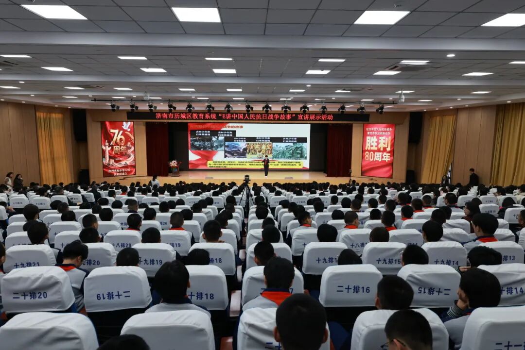 12月18日,济南市历城区教育系统“E讲中国好故事”第五期——“E讲中国人民抗日战争故事”宣讲展示活动在历城区华山第二中学举行。