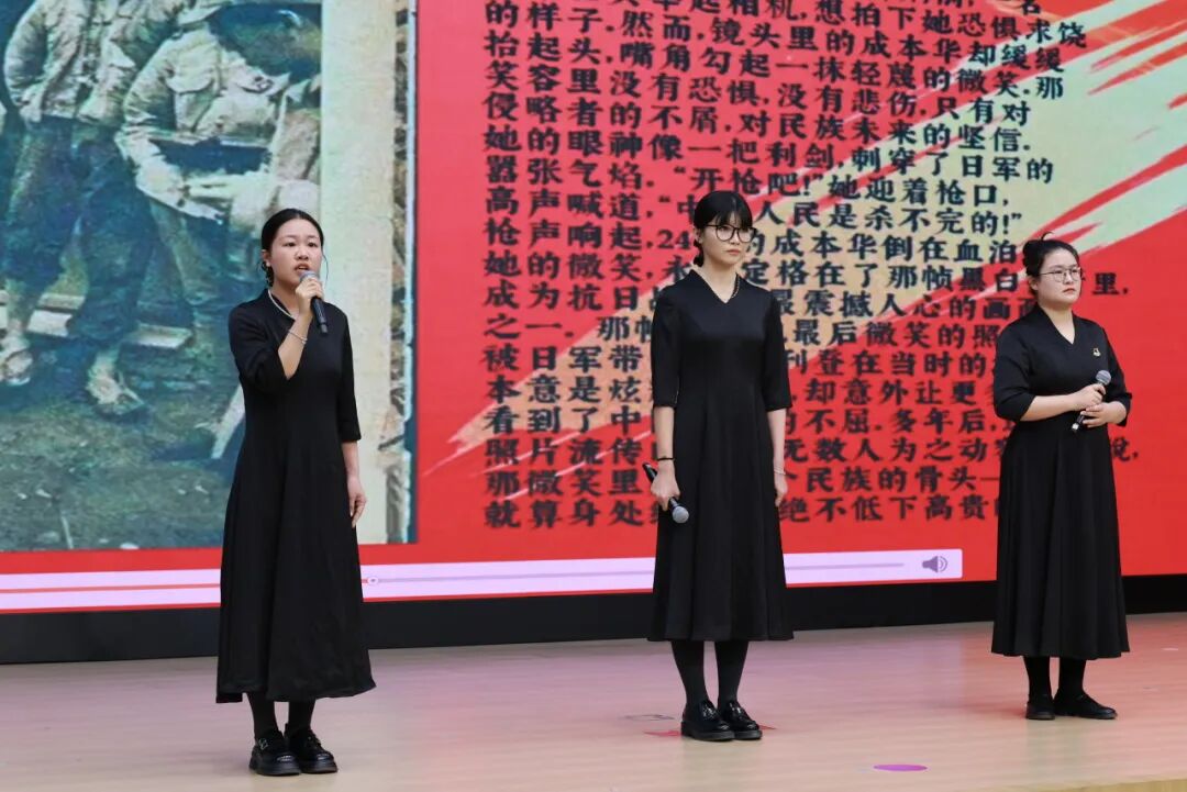 遴选自全区初中学校的14名学生个人和1个学生团体、1个教师团体进行了“E讲中国人民抗日战争故事”的宣讲展示。从赵一曼烈士的《示儿书》到杨靖宇将军林海雪原的孤勇抗争,从王二小诱敌深入的故事到海娃鸡毛信的机智传递,他们用流利的英语讲述了抗战英雄的事迹,重现历史场景。